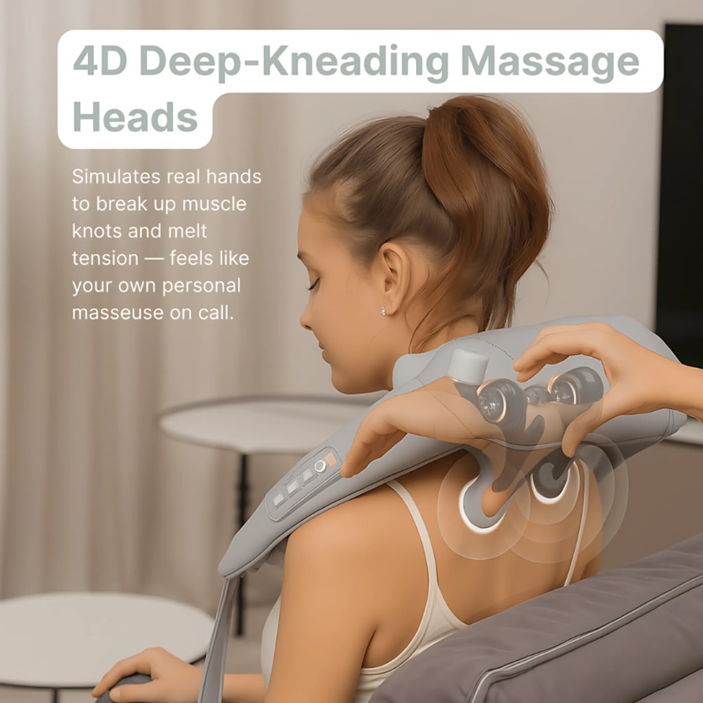La tecnica Shiatsu, originaria della medicina orientale, si concentra sull'applicazione di pressione su punti specifici per rilasciare la tensione e ripristinare l'equilibrio energetico. RelaxTense™ eleva questa tecnica con la sua avanzata tecnologia 4D. A differenza dei massaggiatori convenzionali, che offrono movimenti bidimensionali, le testine 4D di RelaxTense™ simulano la complessità e la profondità delle mani umane, eseguendo movimenti di impastamento, compressione e rotolamento su più assi. Ciò consente di raggiungere strati muscolari più profondi, sciogliendo i noduli di tensione (punti trigger) e promuovendo un rilassamento muscolare completo.